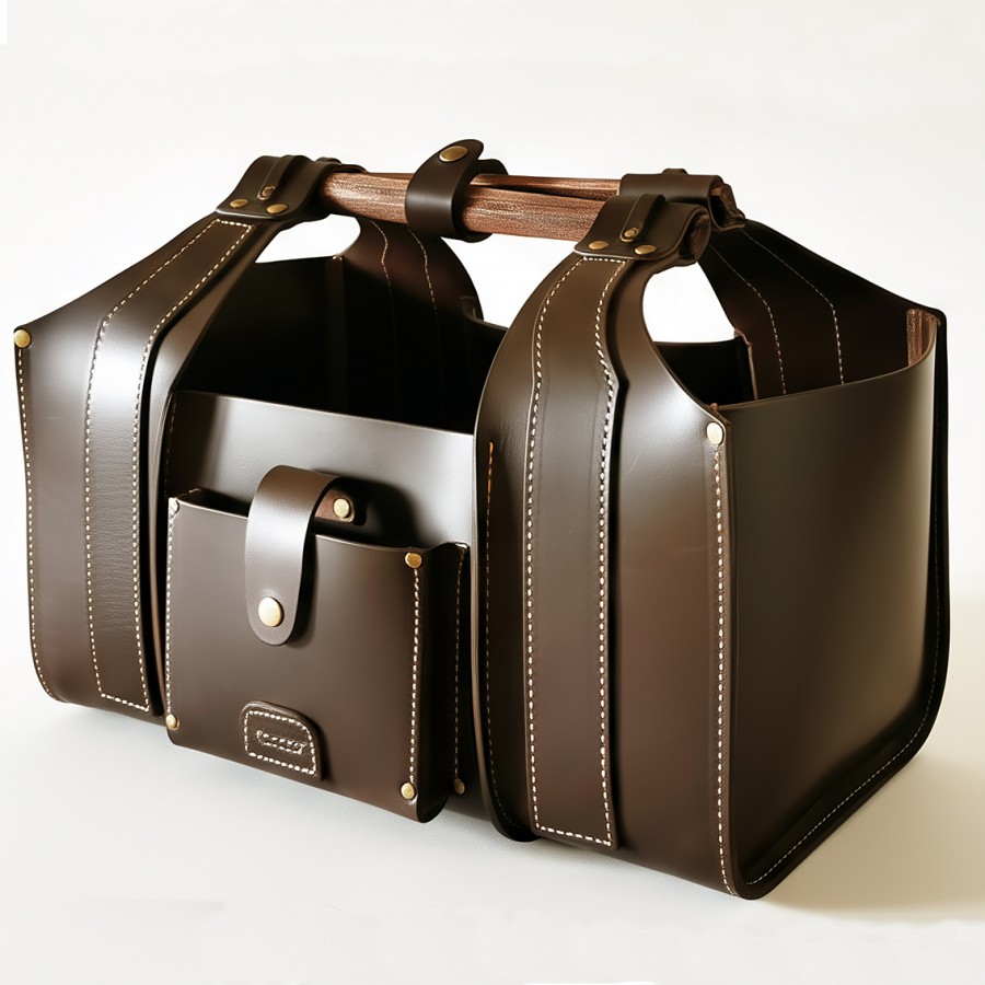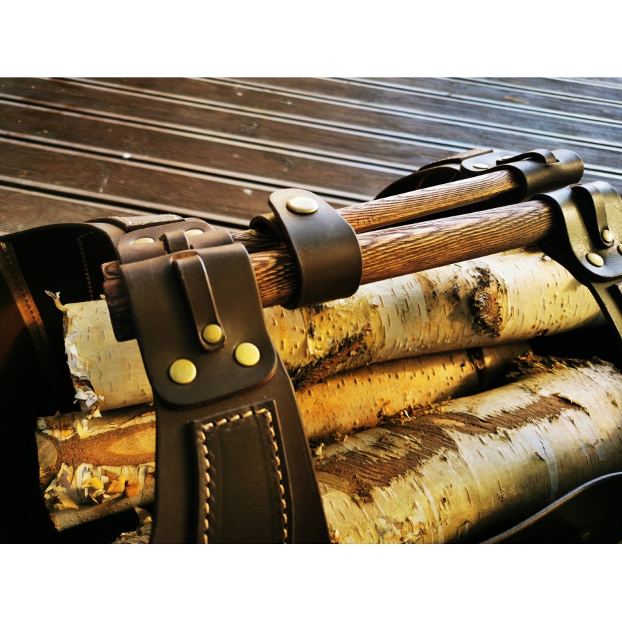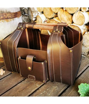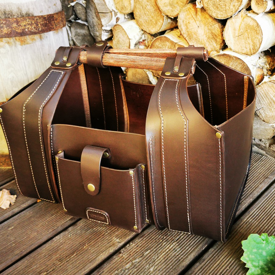 Patikimas, tvirtas krepšys malkoms iš natūralios odos. Gaminiui panaudota diržinė, apie 3,5 mm storio, oda. Oda standi, krepšys išlaiko formą. Laikui bėgant gaminys „sensta“ estetiškai, atsiranda vintažinis efektas. Vienas kitas įbrėžimas ar raukšlelė- tarsi įrašyta istorija.