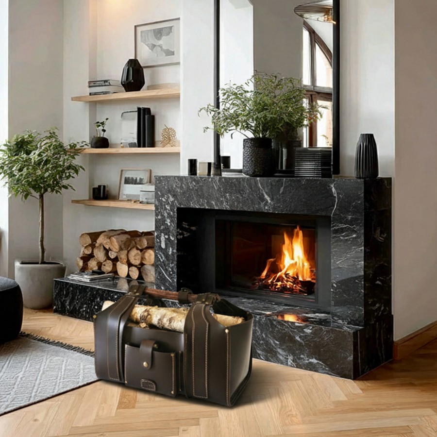 Ir tai ne tik krepšys malkoms. Tai ir interjero akcentas. Pagamintas kruopščiai ir atsakingai. Odos parinkimui teikiant ypatingą svarbą.